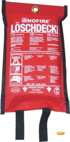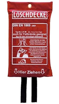 aus Glasfasergewebe zum Ersticken von Küchenfeuern Fettbränden auch zum Löschen brennender Kleidung an Personen geeignet , leichte Anwendung, mit zwei Zugbändern ist die Decke im Brandfall blitzschnell einsatzbereit Löschdecke gemäß DIN EN 1869:2001 in roter Aufbewahrungstasche mit aufgedruckter Bedienungsanleitung › Weitere Produktdetails