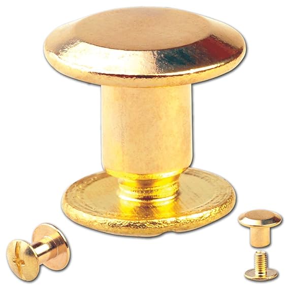 Messingfarbene Buchschrauben z.B. für Buchbinderei, Scrapbooking, Bastel-Projekte, Präsentationsmappen, Mustermappen, Speisekarten, Farbkarten, Fotoalbum, etc. Buchbinderschrauben (auch Chicago-Schrauben oder Buchnieten) eignen sich auch ideal für die Reparatur von Gürteln, Messerscheiden uvm. Kopfdurchmesser: 10 mm, Schaftdurchmesser: 5 mm, verschiedene Schafthöhen verfügbar › Weitere Produktdetails