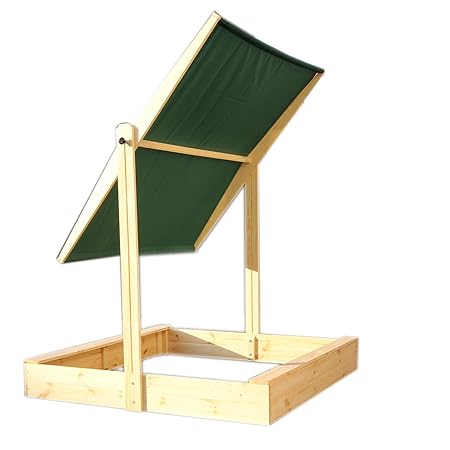 Sicherheit des Buddelkasten viereckig: Sicheres Kinder-Spielzeug für Jungs und Mädchen - Abgeflachte Ecken, Entflammbarkeit von Holz und Sonnensegel gering