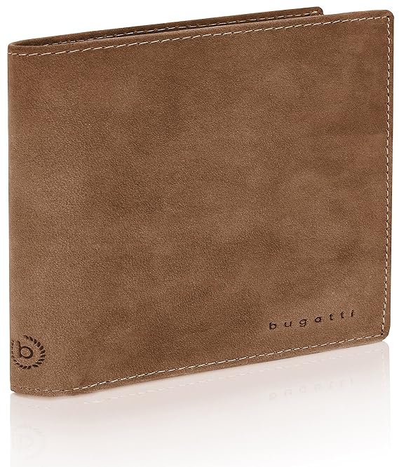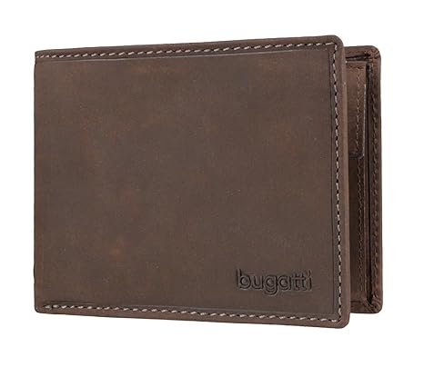 Hochwertiges Herren Portemonnaie aus echtem Leder 7 Kartenfächer, 2 Seitenfächer, Doppelscheinfach und Münzfach Außenmaße (B x H): 12,5cm x 9,5cm – perfekt für die Hosentasche Großes Sichtfach zur Aufbewahrung von Ausweisen Bugatti Markenqualität