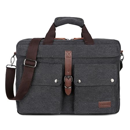 Material: Leinwand mit Kunstleder dekoration; Perfekt für Geschäft, Schule oder Reise; Produkt-Maße: 16.9W x 3.5D x 11.8H Zoll; Gewicht: 2,0 Pfund; ---- ? Innenraum Laptopfach Abmessungen: 15W x 2D x 9.5H Zoll; Passend für die meisten 17 Zoll Laptop, Notebooks, MacBook, Ultrabook. ---- ? ?Kann nicht passen alle Computer aufgrund von Variationen in den Größen der verschiedenen Modelle; Große Größe besser passt für große Leute?; Multifunktions-Taschen: 2 große Hauptfach-Funktion 2 vordere Drucktaschen, 1 hintere Reißverschlusstasche; ---- ? Innenausstattung: 3 Slip-Taschen, 2 große Mesh-Taschen, 1 große Ärmel mit Klettverschluss / Soft-Padding-Laptopfach passt auf einen Laptop oder Tablet bis zu 17 Zoll; Abnehmbarer, verstellbarer Gurtband-Schulterriemen für Quer- oder Schulter trägt / Griff an der Oberseite zum Aufheben; Leinwand Laptop Tasche / Aktentasche perfekt für Büro, Wandern, Camping, Reisen und Casual Life / Es ist auch eine perfekte Schultasche für Männer, Frauen und High School oder College-Studenten.