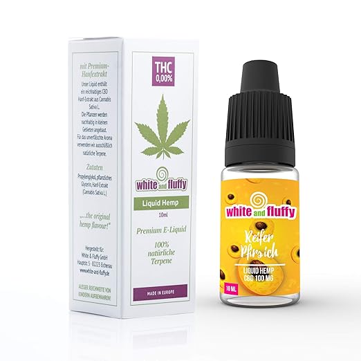 Premium CBD Liquid für E-Zigaretten und E-Shishas mit 'Pfirsich' Geschmack Deutschland | CBD Liquid mit 100-1000 mg CBD | Cannabidiol | Menge 10 ml | VG30 PG70 max | 100% nikotinfrei