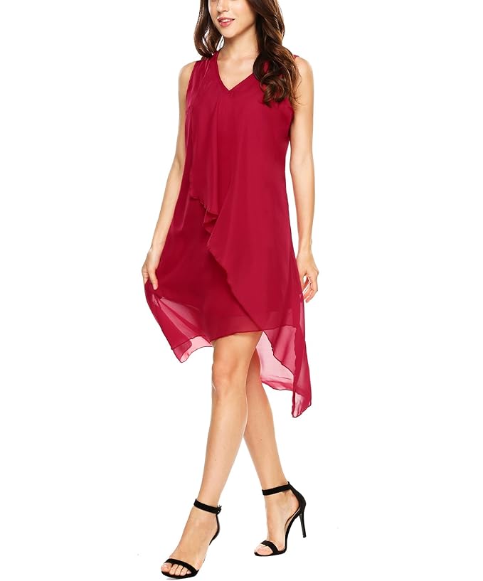 Parabler Damen Ärmellos Sommerkleid Asymmetrischem Strandkleider Festliches Chiffonkleid A-Line Strandkleid Knielang Kleid mi