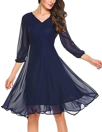 Zeagoo Damen Chiffon Kleid mit Spitzen Elegant Cocktail Party Abendkleid Sommerkleider 3/4 Ärmel A Linie Knielang