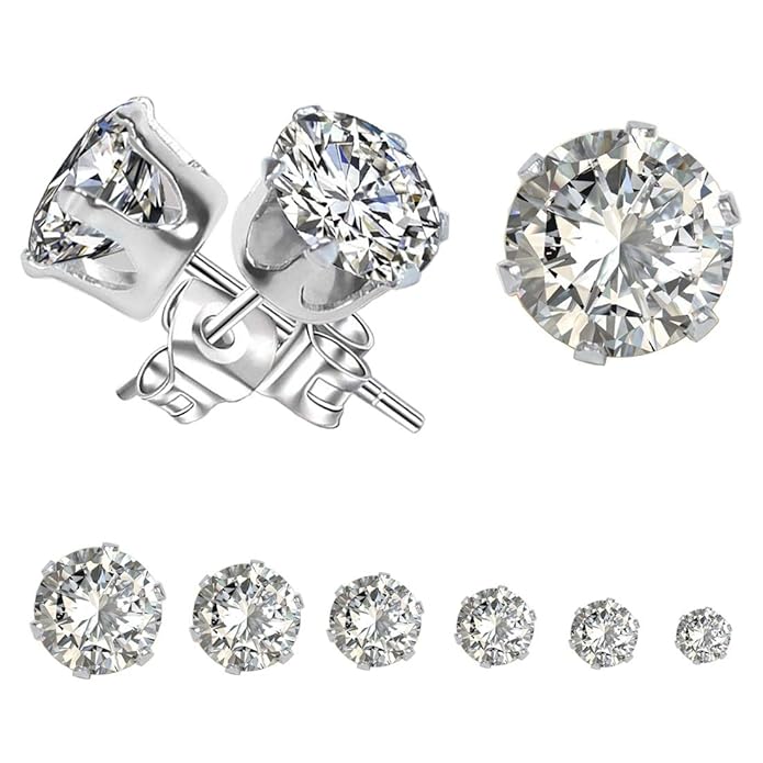 Karte von 6 Ohrringe Tragus Knorpel aus 316L Chirurgischer Edelstahl und Zirkonia Durchmesser: 3 – 4 – 5 – 6 – 7 – 8 mm. Material (S): 316L Chirurgenstahl, Zirkonia Zielgruppe: Erwachsene. Geschlecht: Damen. Saison: Zeitlos. Verschluss: Stecker befestigt