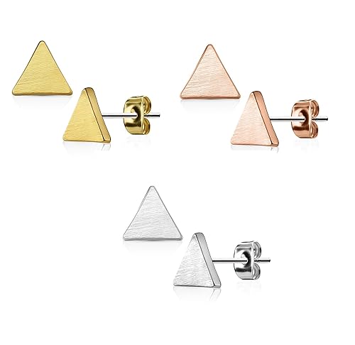 Dreieckige Ohr Stecker im schlichten Look - Gebürstet - Erhältlich in den Trendfarben Gold, Steel u. Rotgold - Bitte auswählen! Verschluss: Stecker - Material: Antiallergener 316L Chirurgenstahl/Edelstahl (für Allergiker geeignet) - Abmessung: 7 mm Durchmesser - LIEFERUMFANG: 1 Paar (2 Ohrstecker) Schmuck Art: Ohrschmuck / Ohrring / Modeschmuck / Damenschmuck