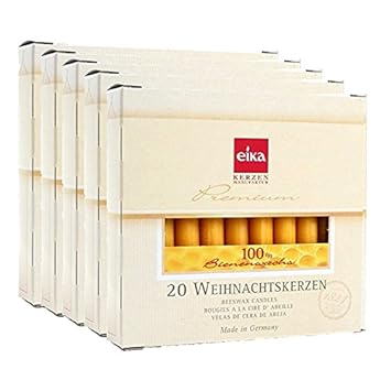 Eika 10266810 Baumkerzen 100% Bienenwachs, naturgelb, 20er Packung