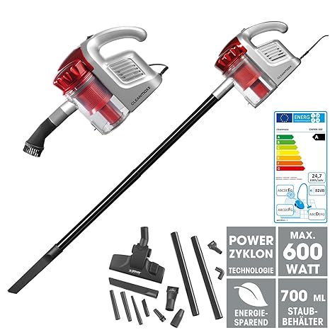 CLEANmaxx 01299 Saugstarker Handstaubsauger, beutellos | Bürsten und Bodensauger | 600 Watt