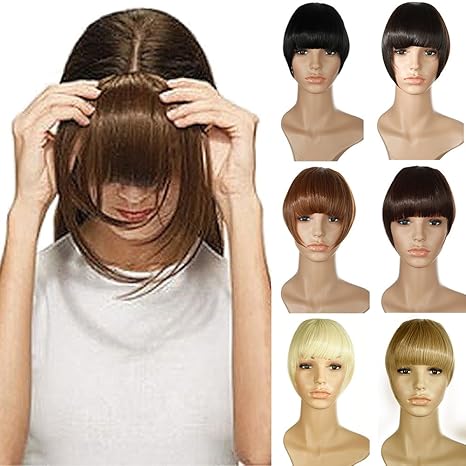 Hochwertige hitzebeständige synthetische Pony Haarteil für Clip in Extenisons Haarverlängerung, eine tolle Alternative für dünnes Haar im Vorderkopfbereich.