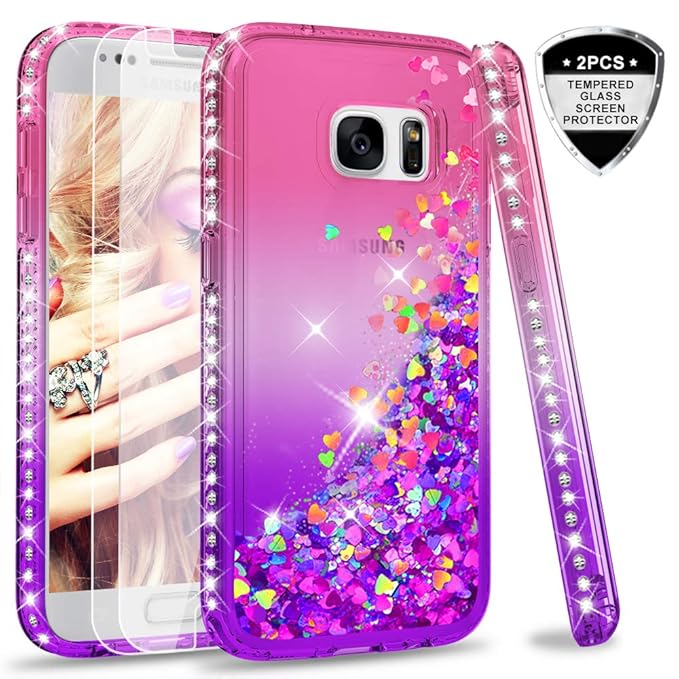 Bling Bling Style: Mit glänzender harter PC sieht die Hülle besonders schick, ansprechend und feminin aus. Sehr schön und elegant galaxy S7 Glitzer Hülle für Mädchen, Frauen