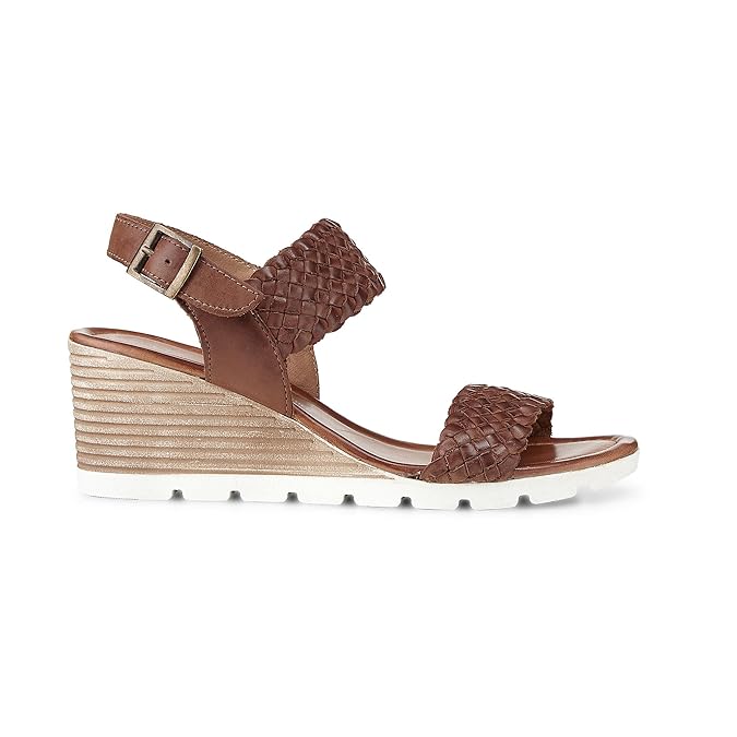 Cox Damen Flecht-Sandalette aus Leder, offene Sommerschuh in Braun mit Einer Laufsohle in Weiß