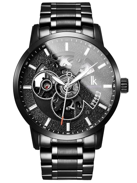 Alienwork IK Skelett Automatikuhr für Herren Automatische Armbanduhr Edelstahl