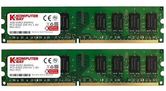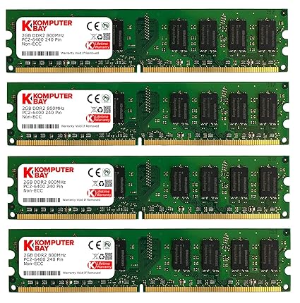 KOMPUTERBAY 8GB ( 2 X 4GB ) DDR2 DIMM (240 PIN) 800Mhz PC2 6400 PC2 6300 8 GB - CL 5 DIMM Desktop-Speicher 1.8v Getestet. Non-ECC Nicht Parität Spannung 1.8V. Unterstützt Dual Channel, Triple-Channel und Quad CHANNEL Lebenslange Garantie GOLD LEADS. 100% kompatibel Speicher Kapazität: 8GB ( 2 X 4GB ) › Weitere Produktdetails