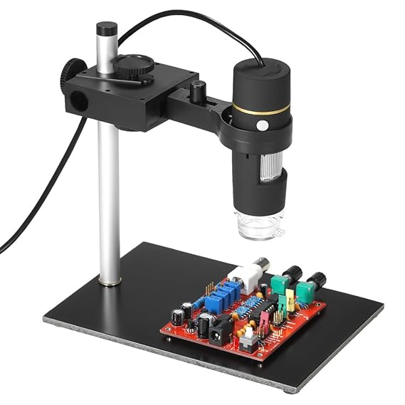 1600-fache Vergrößerung, damit Sie die kleinsten Details sehen können. USB-Schnittstelle mit OTG-Funktion. Der 0,3-MB-CMOS-Sensor eignet sich hervorragend für hochauflösende Bilder Ihrer Proben. Eingebaute 8 LED-Lichter und die Helligkeit ist einstellbar (ein Rad am Kabel). Drücken Sie die Taste am Mikroskop, um verschiedene Farben zu wechseln. Stromversorgung über USB DC 5V, Plug & Play, bequem für den Einsatz. Der verstellbare Metallständer eignet sich gut zum Freisprechen und zur Beobachtung mit mehreren Winkeln. Mit Software und Benutzerhandbuch auf der beiliegenden CD können Sie die Bilder direkt auf Ihrer Festplatte speichern. Geeignet für elektronisches Zubehör / Haut- / Textil- / Schmuckinspektion usw. › Weitere Produktdetails