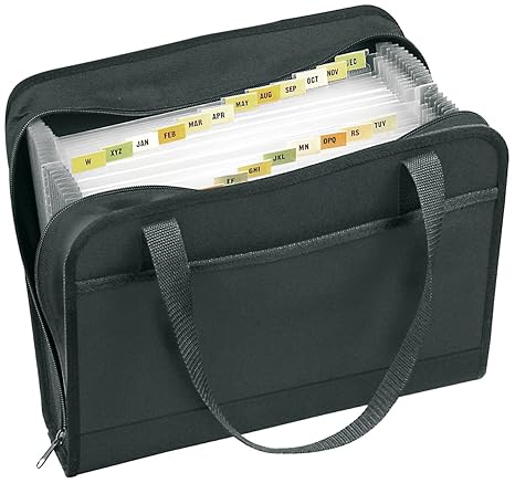 Im praktischen Aktentaschenformat Mit 19 auseinanderziehbaren Fächern Stabile Konstruktion aus Faserplatten mit Tragegriff aus Kunststoff Sicher verschließbare Schnalle; Inklusive vorgedruckter und blanko Registerkarten Lieferumfang: Bankers Box Handifile Dokumentenmappe schwarz › Weitere Produktdetails