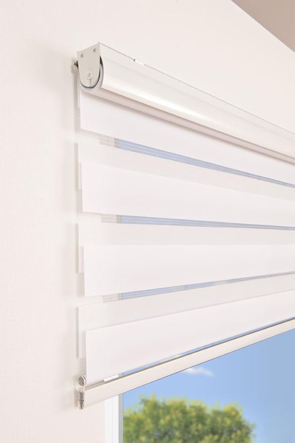 Das Duo-Rollo Doppelrollo Welle kann ohne Bohren oder mit Bohren. an Fenster, Balkontür, Terrassentür montieren,Dachfenster oder an Wand & Decke schrauben. Lieferumfang inkl. Montage Zubehör. Das Doppelrollo Welle Klemmfix ist aus 100% Polyester, Sie können diesen Stoff mit einer weichen Bürste abgebürsten oder mit einem feuchten Tuch abwischen. Messung von Doppelrollo Klemmrollo: Die Stoffbreite ist ca. 4 cm schmäler als die Gesamtbreite. Geeignete Stärke des Fensterrahmens: 17-30mm. Doppelrollo Welle Lichtdurchlässiges Dessin,bestehend aus einem blickdichten und einem transparenten Stoff im Wechsel.Mit Hilfe des Kettenzuges können Sie das einfallende Licht ganz individuell dirigieren. Kindersicherheit: Alle Rollos den gemäss EU-Sicherheitsrichtlinie mit einem Ketten-/ Schnurhalter geliefert. Somit wird eine Strangulierung durch freihängende Ketten oder Schnüre verhindert.