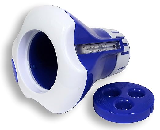 XL Dosierspender für Pool & Schwimmbad | extra großer Chemikalienspender für bis zu 4 Chlortabletten, Multitaps und andere Poolchemikalien in Tablettenform mit 200g Gewicht und max Ø 10 cm Schwimmender Dosierer mit Stellring zur stufenlosen Einstellung der zwei Wasser-Durchfluss-Öffnungen. Hiermit wird die Abgabe der Chemikalienmenge ins Schwimmbadwasser eingestellt Große Dispenser Öffnung mit einem komfortablen Schraubverschluß Deckel mit Griffmulden. Die weite Öffnung ermöglicht eine Befüllung mit verpackten Pooltabletten ohne Hautkontakt zur Chemikalie Chlortablettenspender für aufstellbare Gartenpools und eingebaute Schwimmbecken & Schwimmbäder. Beachten Sie immer die Herstellerangaben zum Umgang mit der verwendeten Poolchemie Zubehör zur Wasserpflege - Dosierschwimmer für Pools aus PVC & Metall, Schwimmbecken mit Hartschale & geflieste Schwimmbäder. Maße: ø 12 x 12 cm, Gewicht: 220 g, Material: Polypropylen