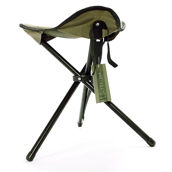 Campingstuhl / Dreibeinhocker mit Tragetasche in Farbe oliv - grün in der optimale Begleiter für Freizeitaktivitäten wie Outdoor, Camping, Jagd, Angeln stabile Ausführung, Belastbarkeit von bis zu 110 kg geringes Gewicht ca. 750 Gramm und kleines Packmaß von ca. 7 x 7 x 60 cm Sitzhöhe: ca. 40 cm, Sitzfläche: ca 30 x 30 x 30 cm (dreiecksform)