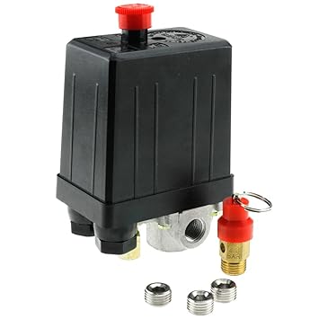 Ein- und Ausschaltdruck einstellbar von 2,0 bis 12,0 barEin roten ON / OFF-Schalter Knopf ist verfuegbar. Es geeignet fuer den Speicher der elektrische Energie von dem Luftkompressor. max. zulässiger Druck 10,0 barBetriebsspannung: max. 500V Volt, 20 ASchutzklasse IP44 (spritzwassergeschützt) 3-phasig für gleichzeitige Schaltung von allen 3 Phasen Einfach zu installieren und bequem zu bedienen , Einsatzgebiet: Druckluft-Kompressore Druckschalter für Kompressoren: inkl. Druckminderer - Sicherheitsventil 8,8 bar - 2 Stück Manometer und 2 Druckluftschnellkupplungen › Weitere Produktdetails