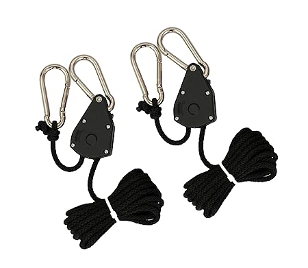 Zuverlässige Unterstützung und passender Abstand von Pflanzen mit Spannmechanismus. Bis zu 150 lbs Tragkraft pro Paar, kompatibel mit allen parabolischen und runden Reflektoren, solange Haken und Ringschrauben passen. Gebaut aus robustem Material mit starken Metall-Innenzahnrädern, die niemals abbremsen oder rutschen werden für Ihre flexible Anpassung und vollständige Verriegelung! Einfach zu bedienende Karabinerklammern sind jetzt auf Edelstahl für lange Zeit stressfrei im Freien oder innen aktualisiert! Ideal zum Aufhängen von Reflektoren, hohen Armaturen, Kohlefiltern, Flitterbeutel und Lüftungsgeräten. Erzielen Sie die perfekte Lichtpositionierung ohne die Gefahr des Brechens oder Rutschens, das Anheben und Absenken Ihrer Wachstumslichter wird zum Kinderspiel.
