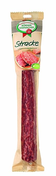 ????Jetzt den Wurstweltmeister testen- Die Ahle Worscht der Metzgerei Kohl Kramer gewann auf der internationalen Fleischerei-Fachausstellung insgesamt 80 Goldmedaillen und wurde zur besten Mettwurst 2016 gewählt. Die Wurst Delikatesse konnte sich erfolgreich gegen andere internationale Wurstspezialitäten wie der italienischen Salami, polnischen Krakauer oder der spanischen Chorizo durchsetzen! ? Super Edel Salami - Unsere Gourmet Salami ist eine Spezialität aus Nordhessen und kommt ursprünglich aus Kassel. Ihre besondere Herstellung gibt der „Ahlen Wurscht“ ihren einzigartigen Namen. Erst nachdem sie 6 bis 8 Wochen gereift ist entwickelt die Wurst ihren besonderen, herzhaften Geschmack. Probieren Sie die Wurst sowohl geräuchert oder als luftgetrocknete Salami und entscheiden Sie selbst. Die 400g Edelsalami ist ein Muss für alle Wurstliebhaber! ?Absolute Spitzenqualität - Die Stracke wird von der Traditionsmetzgerei Kohl Kramer nur mit den besten Zutaten und nach altem Familien Rezept hergestellt. Da es sich um eine natürliche, handwerklich hergestellte Delikatesse handelt wurden nur edelste Zutaten und bestes Schweinefleisch verwendet. Die Wurst enthält keinerlei Geschmacksverstärker und ist zudem laktose- und glutenfrei. ?Einzigarter Geschmack - Die ahle Wurscht zeichnet sich durch einen unglaublichen, herzhaften Geschmack aus. Egal ob nebenbei als Snack, aufs Brot oder als Salami Stick für nebenbei, die Wurst passt überall. Zusammen mit einem süffigen Bier und einem Stück Käse entfaltet die Wurst ihren einzigartigen Geschmack. ? Perfekte Geschenkidee – Unsere Wurst ist ein absolutes „MUSS“ für alle Feinschmecker und Wurstliebhaber. Egal ob im Spezialitäten Geschenkkorb, im Geschenkset, oder als Feinkost die Wurst ist eine echte deutsche Spezialität. Probieren Sie selbst und überzeugen Sie sich von dem einzigartigen Geschmack! › Weitere Produktdetails