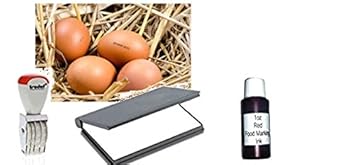 Dieser tolle kleine Set ist alles, was Sie benötigen, um Ihre Eier zu datieren. Das Stempelkissen wurde mit lebensmittelsicherer Tinte eingefärbt, die nötig ist, da die Eierschalen durchlässig sind.