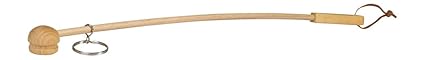 Leicht gebogene Holzstiel hat im vorderen Bereich eine Klettverbindung zur Befestigung eines Eincremekisses