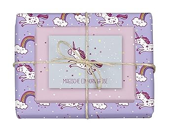 Einhorn Geschenkpapier 12er Set, aus Papier inkl. Geschenkanhänger