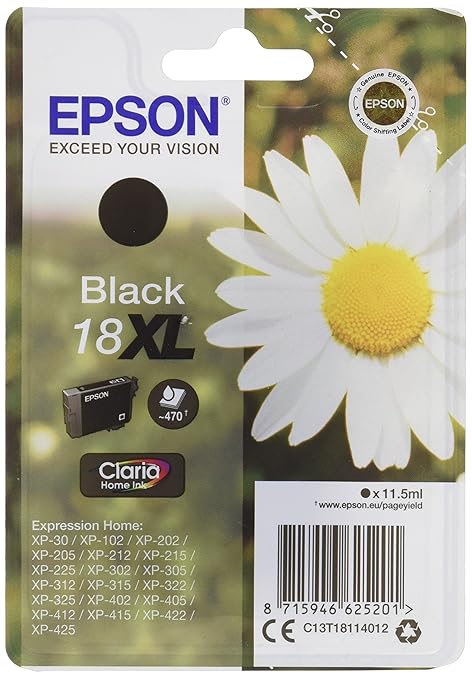 Epson Original T1801 Tintenpatrone Gänseblümchen, Claria Home Tinte, Text- und Fotodruck (Singlepack) schwarz