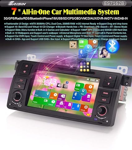 Erisin ES4862B 7 'Android 9.0 Nav DAB + OBDII BT DTV-Autoradio für BMW 3er E46 M3 Rover75 MG Klicken Sie auf Hier für Prüfen die Kompatibilität Dies Produkt mit Dein Modell