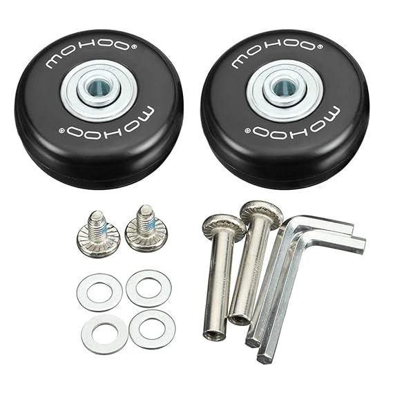 PERFEKTE FIT MEISTER GEPÄCK: Die Räder passen perfekt zu den meisten Gepäckstücken, praktisch in der Anwendung, ein großartiges Zubehör für Koffer. Hohe Qualität Trolley Koffer Gepäck Leder Gepäck Mute Dämpfung Räder FUNKTION: Gepäck-Koffer-Ersatz-Räder. Ruhig, haltbar, glatt und gute Härte. Sehr ruhig und bouncy. Einfach zu installieren. EINFACH ZU INSTALLIEREN: Jedes Set besteht aus 2 Stück Ersatzrädern, einfach zu installieren ohne komplexes Werkzeug. LONG TIME SERVICE: Langlebige und PVC-Räder in hervorragender Blank-Farbe, langlebig für lange Zeit. GARANTIE: Wenn Sie Fragen zu unserem Produkt haben, können Sie jederzeit eine E-Mail an uns senden. Wir antworten Ihnen sofort und helfen Ihnen, Ihre Frage zu lösen