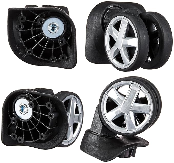 4er-Pack Ersatzräder für Trolleys Geeignet für alle Hartschalen-Trolleys von AmazonBasics Perfekter Ersatz für abgetragene Räder und ideal als Ersatzräder für den Notfall Alle Montageteile sind im Lieferumfang enthalten - Sie benötigen nur einen Schraubendreher (Schraubendreher ist nicht enthalten)
