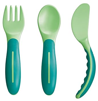 Bitte beachten: Die Farbe des Artikels ist für Sie nicht frei wählbar. Sie erhalten eine der auf dem Bild abgebildeten Farben (zufällige Auswahl in unserem Lager). Lieferumfang: 1 Löffel + 1 Gabel Esslern-Besteck, ab 12 Monate ergonomisch geformt, rutschsichere Griffe spülmaschinengeeignet › Weitere Produktdetails