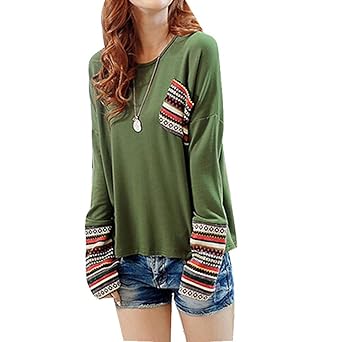 Overdose Casual Frauen Stehkragen Langarm beiläufige lose Tunika Tops T Shirt Bluse Damen Sommer Herbst Langarmshirt Freizeit
