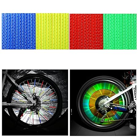 Bright reflective series product, colorful light bicycle spokes. 360° reflection for improved visibility No batteries, can be used for a long time, sun and rain are available. Give a strong reflection under the light irradiation Fits all standard spoked (2mm diameter)