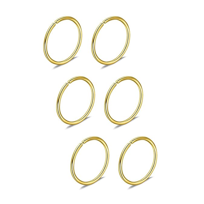 JFORYOU 20G 6mm 8mm 10mm 6 Stück Fake Nasen Septum Piercing Nasenpiercing Hoop Fake Ohr Cartilage Ring