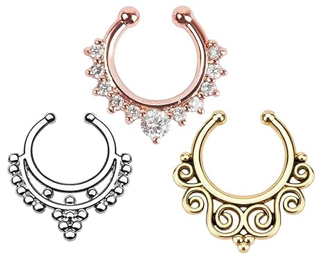 FECTAS 3stk Silber Fake Septum Nasenring Ohrklemme Edelstahl Nasenpiercing Ohrclips Kein Piercing