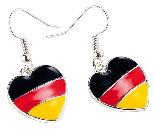 Perfekt gestylt zur WM • Flagge bekennen • Top Preis-Leistung Ohrhänger im schwarzrotgoldenen Deutschland-Design Fischhaken mit herzfömigem Anhänger Zeigen Sie, für welche Mannschaft Ihr Herz schlägt! Anhänger: 17 x 19 mm. Fussball-Ohrringe - Außerdem relevant oder passend zu: Geschenk Damen, Ohrring, Kinder, Farbe, Fan