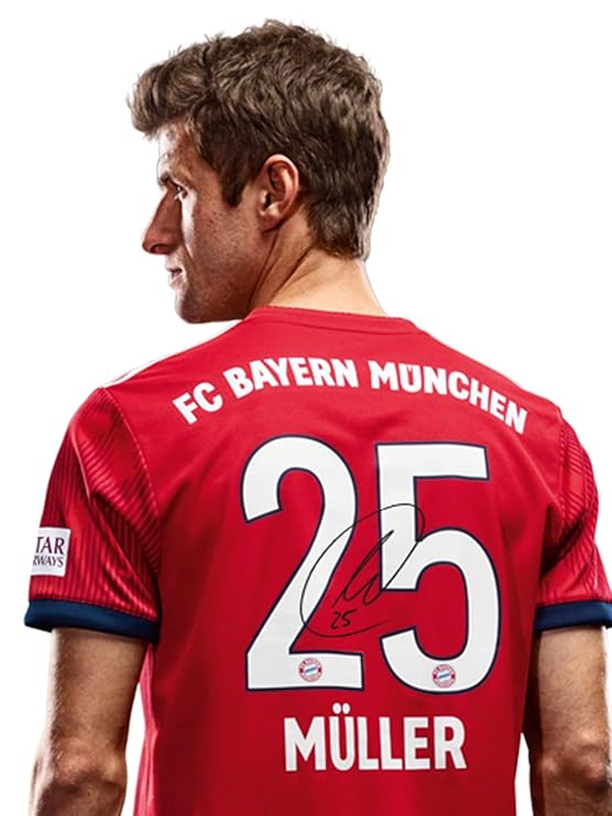 Original FC Bayern München Trikot mit exklusiver Rückennummer mit GEDRUCKTER UNTERSCHRIFT. Der Rücken-Flock inklusive Unterschrift ist äußerst langlebig und kann problemlos gewaschen werden.