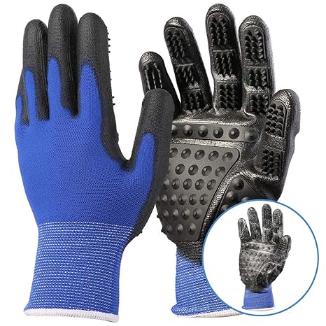 Neuste Haustierpflege Handschuhe:Mit der Fellpflege Handschuhe können Sie das lose Fell, Staub und Schmutz tangles Haar für Ihr Haustier effektiv entfernen.Das Fünf-Finger-Design kann verwendet werden, um jeden Teil von Haustieren, wie Gesicht, Beine oder Schwanz zu pflegen. Gute Massagehandschuh für Ihre Libings:Unsere Haustierbürstenhandschuhe mit weichen GummiNoppen fördert nicht nur die Durchblutung, sondern stimuliert auch das angenehme Hautgefühl, genau wie eine entspannende und sanfte Massage.Die weichen Noppen auf der Handfläche schonen Haut und Fell Ihrer Liebling. Umweltfreundliches und Hochwertige Materialien: Das Mesh auf der Rückseite der Bürste ist weich, atmungsaktiv und elastisch , anstatt sich Ihre Hände verschwitzt leicht, halten den Fell sauber und glatt.Die Handfläche dieses Handschuhs ist mit Nitrilkautschuk beschichtet und wasserdicht.Der erhöhte Noppen besteht aus umweltfreundlichem Gummi, der haltbar ist und die Haut des Haustieres nicht schädigt. Einstellbare Größe: Der extra starke Klettverschluss und der eingenähte Stretchstoff auf dem Handrücken des Handschuhs sorgen sorgen für eine optimale Passform. Am Handgelenk ist ein Klettverschluss, mit dem man die Weite der Öffnung individuell variieren kann. Hinweis:Weil einige Katzen, Hunde und Pferde relativ kurzes oder hartes Haar haben, fällt das gebürstete Fell bei Verwendung der Handschuhe direkt ab und klebt nicht an den Handschuhen. Beim Kämmen sollte es in Richtung Haarwuchs gekämmt werden.Für Haustiere mit dichtem Haar sollten Sie ihr Fell schichten und kämmen › Weitere Produktdetails