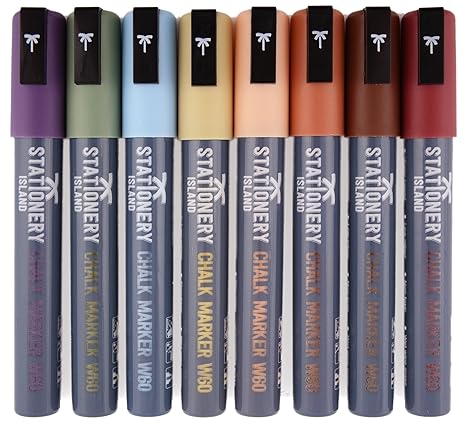 Stationery Island Kreidestifte W30 3mm Feine Rundspitze – Kreidemarker Feucht Abwischbar Bunt 8er Set