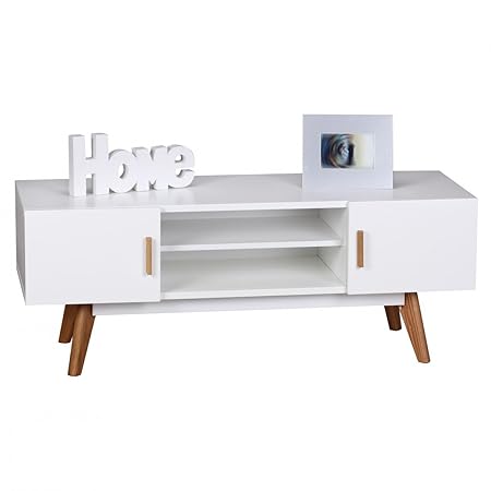 ?TV Board verfügt über 4 offene Fächer mit zwei seitlichen Fächern, in denen Sie CDs, Discs oder Bücher ablegen können.
