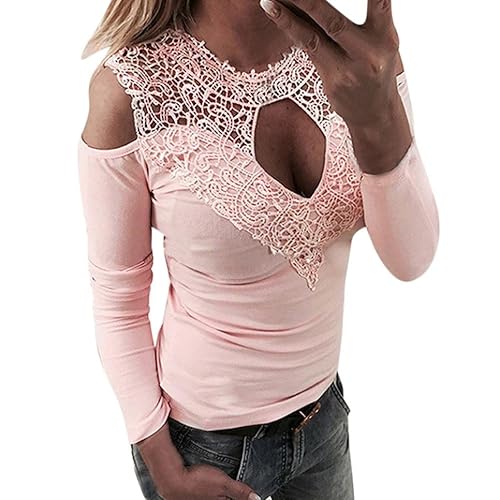 REALIKE Damen Langarmshirt Damen Elegant Floraler Spitze Blusen Festliche Oberteile Beiläufige Sweatshirt Slim Fit Basic Shir