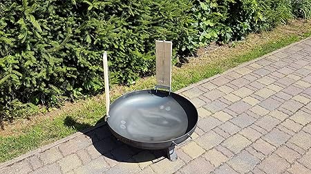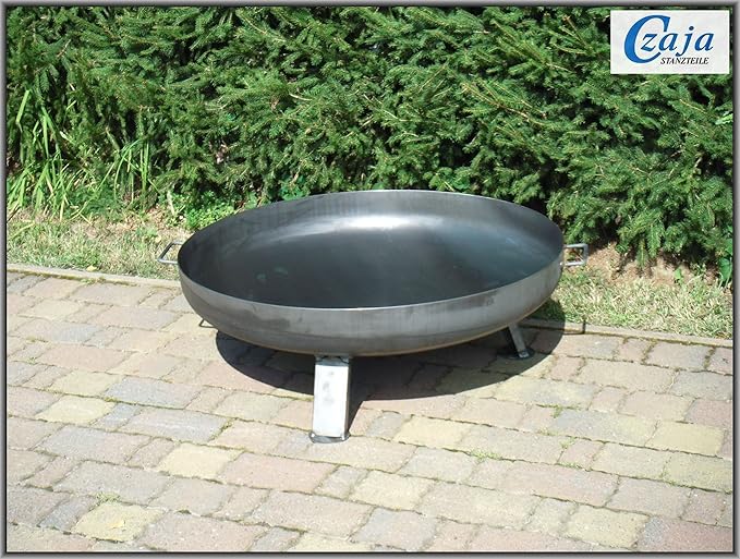 Schale besteht aus hitzebeständigem Stahl und steht auf 3 fixen Beinen für einen stabilen Stand und sichere Nutzung