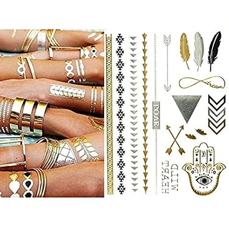 MyBeautyworld24 Gold Metallic Flash Tattoos in verschiedenen Designs Flash Tattoos Body Tattoo Armband Halskette Körperschmuc
