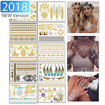 ?PACKAGE INCLUDES- Great & fun metallic temporary tattoos, contains 18 Sheets, many designs to choose from.OVER 200+ New & stunning designs that match the vibrant images shown. Perfect for gift ideas for her and DIY presents!