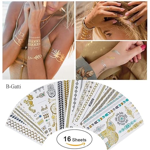 ?PREMIUM QUALITY - Our metallic temporary tattoos will last several days and keep its flash and glitter look. Not to mention, they’re waterproof and come in gorgeous designs including flowers, animals, and more.