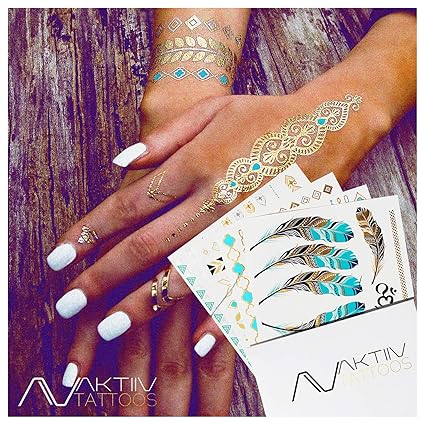 Großartig für alle Hauttypen - Diese temporären Tattoos sind ungiftig und von guter Qualität. Kein Schaden für Ihre empfindliche Haut. Geeignet für Erwachsene oder Kinder Langlebig und wasserdicht - Diese gefälschten Tattoos können mindestens 5 Tage ohne Peeling dauern. Sie können sie zum Schwimmen oder Duschen tragen Elegantes Design und realistisches Aussehen - Diese Metallic-Tattoos haben unterschiedliche Designs für jedes Blatt, Mehr als 100 verschiedene Muster, Treffen Sie Ihre unterschiedlichen Bedürfnisse. Es umfasste Federn, Pfeile, Sterne, Diamanten, Flügel, Elefanten, Schmetterlingsarmbänder usw. Und sie sind Blickfang, auffällig und sieht realistisch aus Einfach zu übertragen und zu entfernen - Es kann leicht in Sekunden aufgetragen werden und wirklich gut übertragen. Einfach auf die Haut mit Öl oder Alkohol abziehen Vielseitige Anwendung - Diese tollen Tattoos können an jedem Körperteil verwendet werden. Geeignet für Geburtstagsfeier, Hochzeit, Strände, Feiertage und Festivals. Auch toll für Fimo oder Dinge mit glatter Oberfläche
