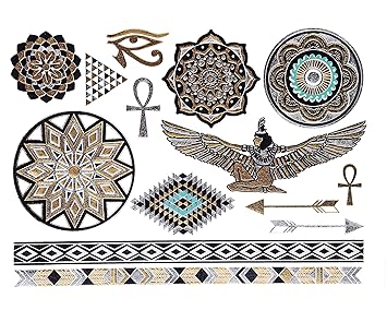 Indianer Klebetattoos Metallic Abziehtattoos Klebe Tattoo Ägypterin Indianer Fake Tattoos Make up Fasching Temporäre Haut Kle