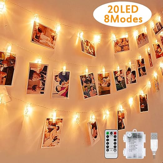 DEKORATIV - Die Foto-Clips sind ideal, um ihr Wohnzimmer oder Schlafzimmer zu schmücken. Das Licht beleuchtet Ihre Fotos ansprechend und ist eine schöne Dekoration.